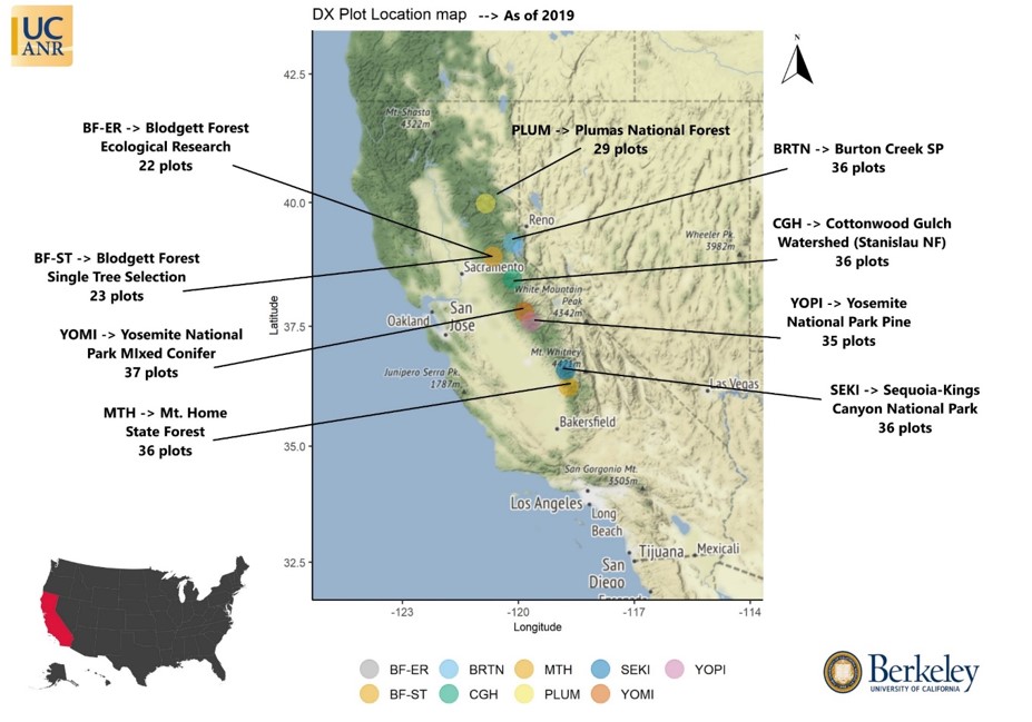 Como parte de mis actividades como investigador postdoctoral, trabajé en el proyecto sobre mortalidad de árboles en California. Mi trabajo estuvo enfocado en estudiar los patrones de mortalidad y regeneración a lo largo de un gradiente diverso de condiciones de sequía, manejo y tipo de bosques en la región de la Sierra Nevada. También hicimos un análisis de la biomasa muerta en forma de “combustibles” para contar con información de base para la planificación y manejo de riesgo de incendios.2021 Annual dx workshop